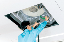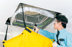 熱交換器を専用の薬剤でクリーニング。最後に抗菌・防カビ処理を施します。