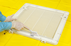 熱交換器をバキューミングして、たまったホコリを取り除きます。